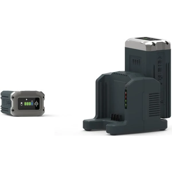 CRAMER snellader met 2 oplaadslots, compatibel met alle Cramer 82V-batterijen. Bij het laden van twee accupacks worden beiden accu’s afzonderlijk in sneltempo geladen zodat je niet lang hoeft te wachten om verder te doen.
