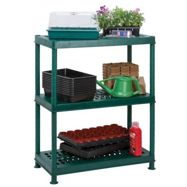 Heavy duty opbergrek voor in de tuinkas, het tuinhuis of de garage. Heavy duty betekent dat elk van de drie legboorden tot 50 kg belast kan worden.