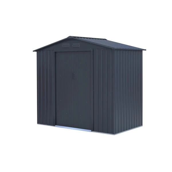 Een kwalitatief metalen tuinhuis van Sinolily met zadeldak en dubbele schuifdeur. Makkelijk te monteren en gratis aan huis geleverd.