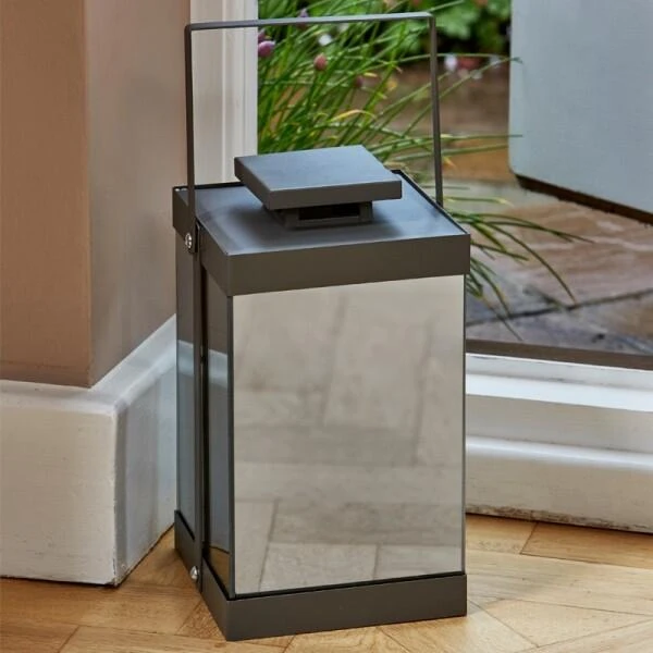 Originele lantaarn in spiegelglas. Deze lantaarn is voorzien van een ledstrip met 30 gele leds. De ledstrip wordt gevoed door batterijen (niet inbegrepen). Het eenvoudig design van deze lantaarn in combinatie met het oneindige spiegelglas zorgt voor een echte eyecatcher.
