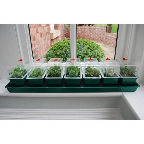 Kweek bloemen, groenten of kruiden in afzonderlijke kasjes. Deze 7-delige kweekkas is een complete kwekerij voor op de vensterbank.