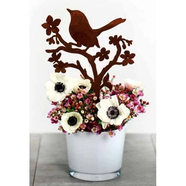 Een leuke en originele decoratie om jouw plantenbak op het terras of balkon extra leven in te blazen. Een oplettende vogel zit bovenop een bloesemtak en met de pin prik je deze decoraie vlot in de ondergrond.